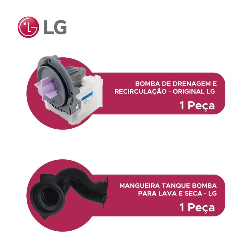 Garanta a eficiência da drenagem e recirculação da sua Lava e Seca LG com este kit completo e original. Reunimos dois componentes essenciais para o funcionamento adequado do sistema hidráulico do seu eletrodoméstico, proporcionando mais praticidade na manutenção e segurança no desempenho.