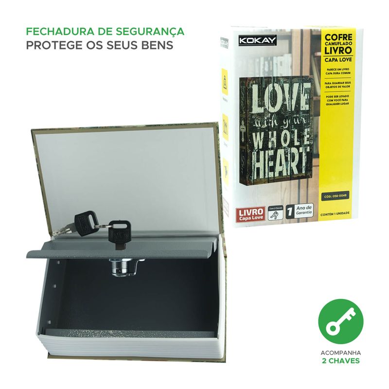 COFRE CAMUFLADO LIVRO COM 2 CHAVES - 18X11.5X5.5CM - LOVE