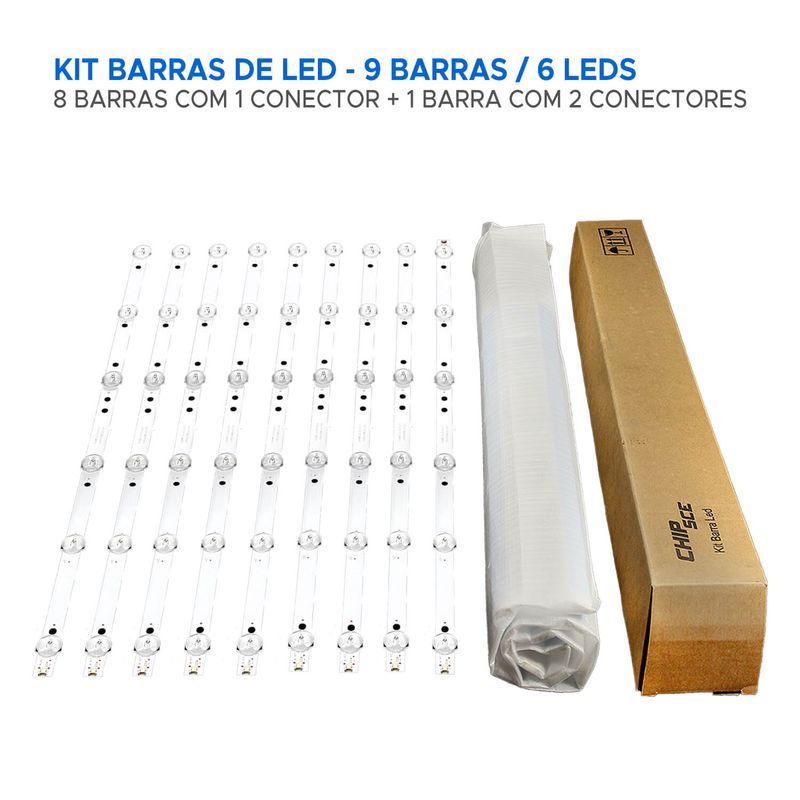 O kit é composto por 9 barras com 6 leds cada