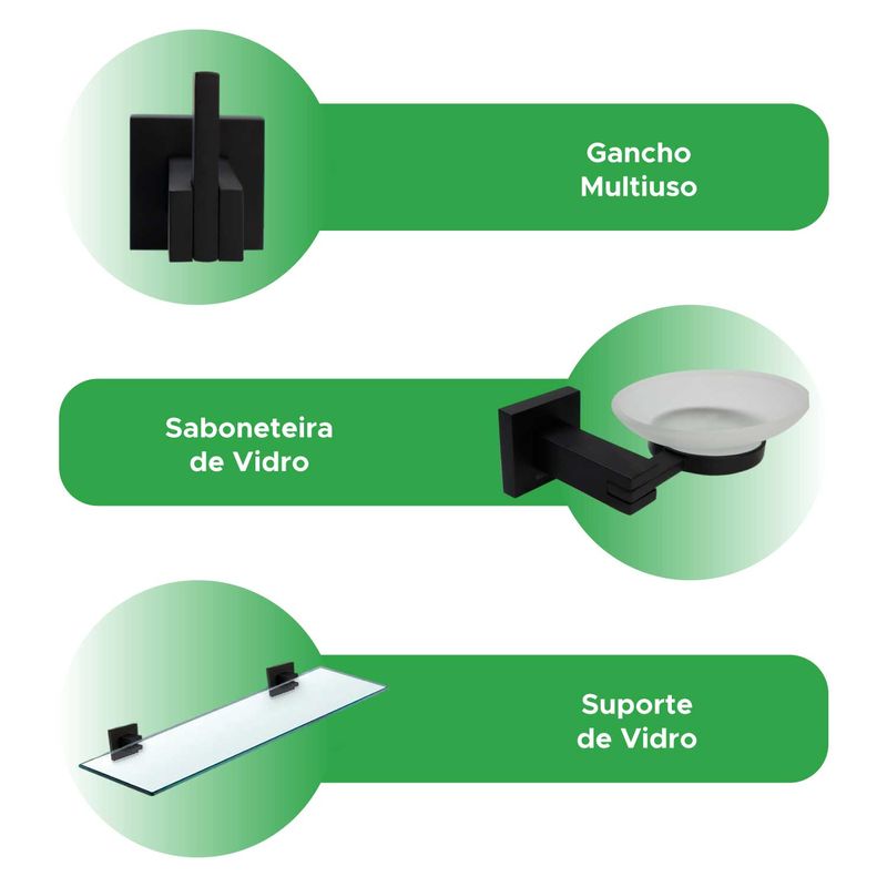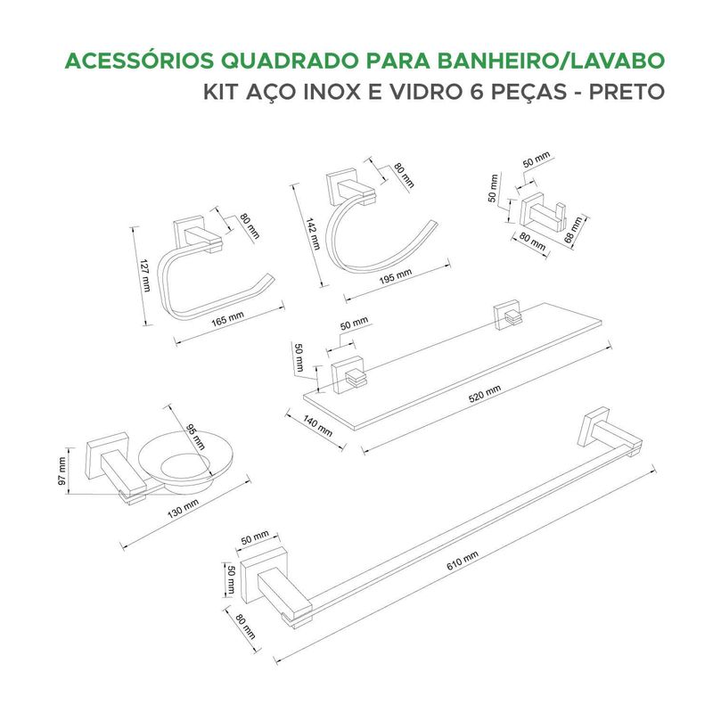 Kit Acessórios Banheiro Em Aço Inox E Vidro 6 Peças