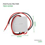 A Pastilha Peltier TEC1-12709 é um módulo termoelétrico que utiliza o efeito Peltier para gerar um diferencial de temperatura entre suas faces ao ser alimentado por corrente elétrica. Com capacidade de até 9 A, oferece desempenho confiável em aplicações que exigem resfriamento ou aquecimento eficiente em sistemas eletrônicos e laboratoriais de pequeno e médio porte.